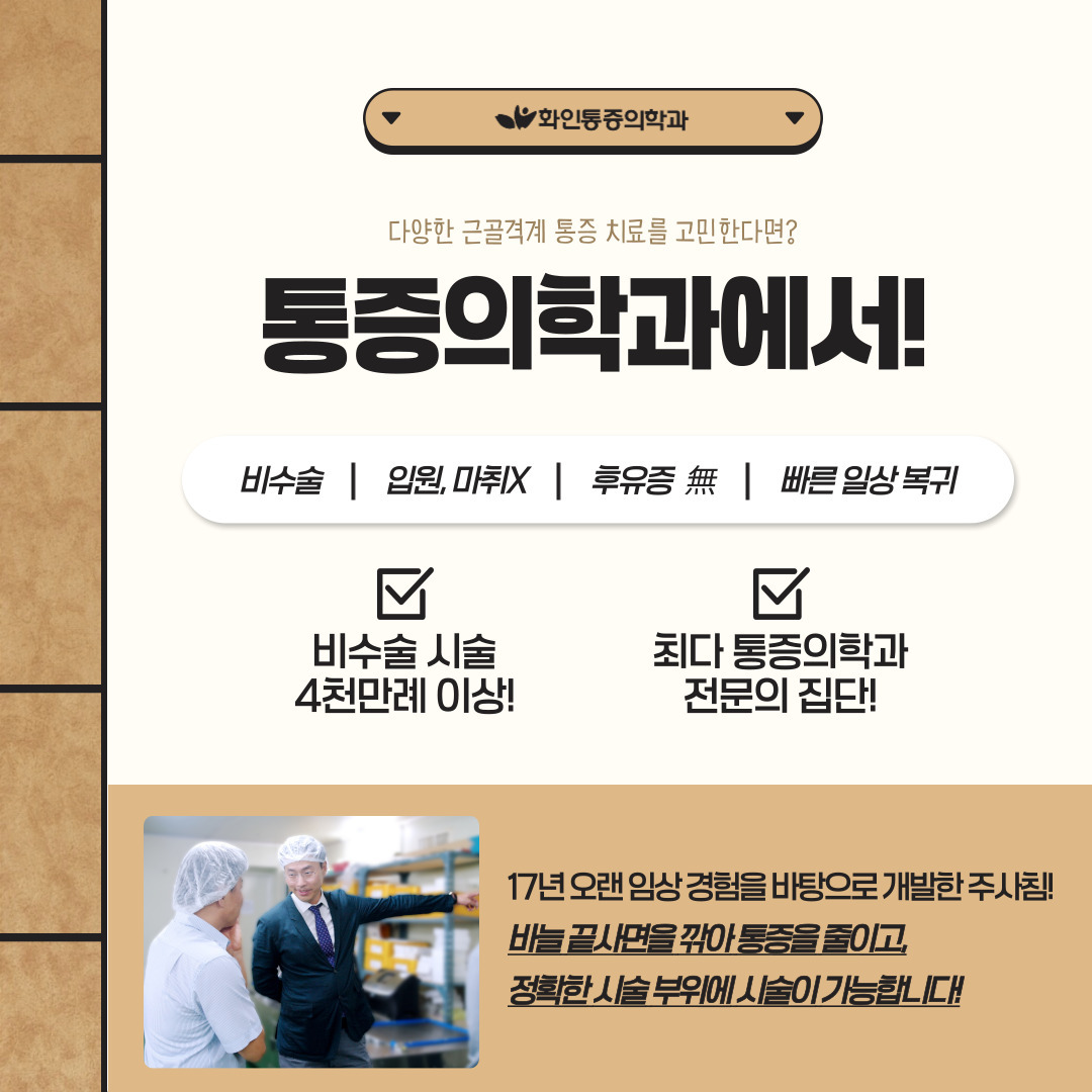 화인통증의학과 노원점에서는 도수치료, 주사치료,