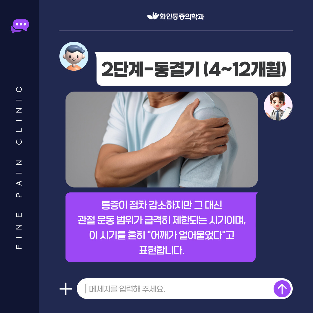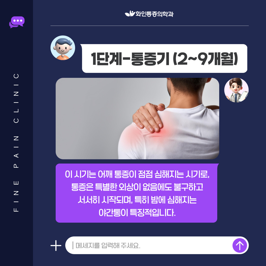 이 시기는 어깨 통증이 점점 심해지는 시기로,
