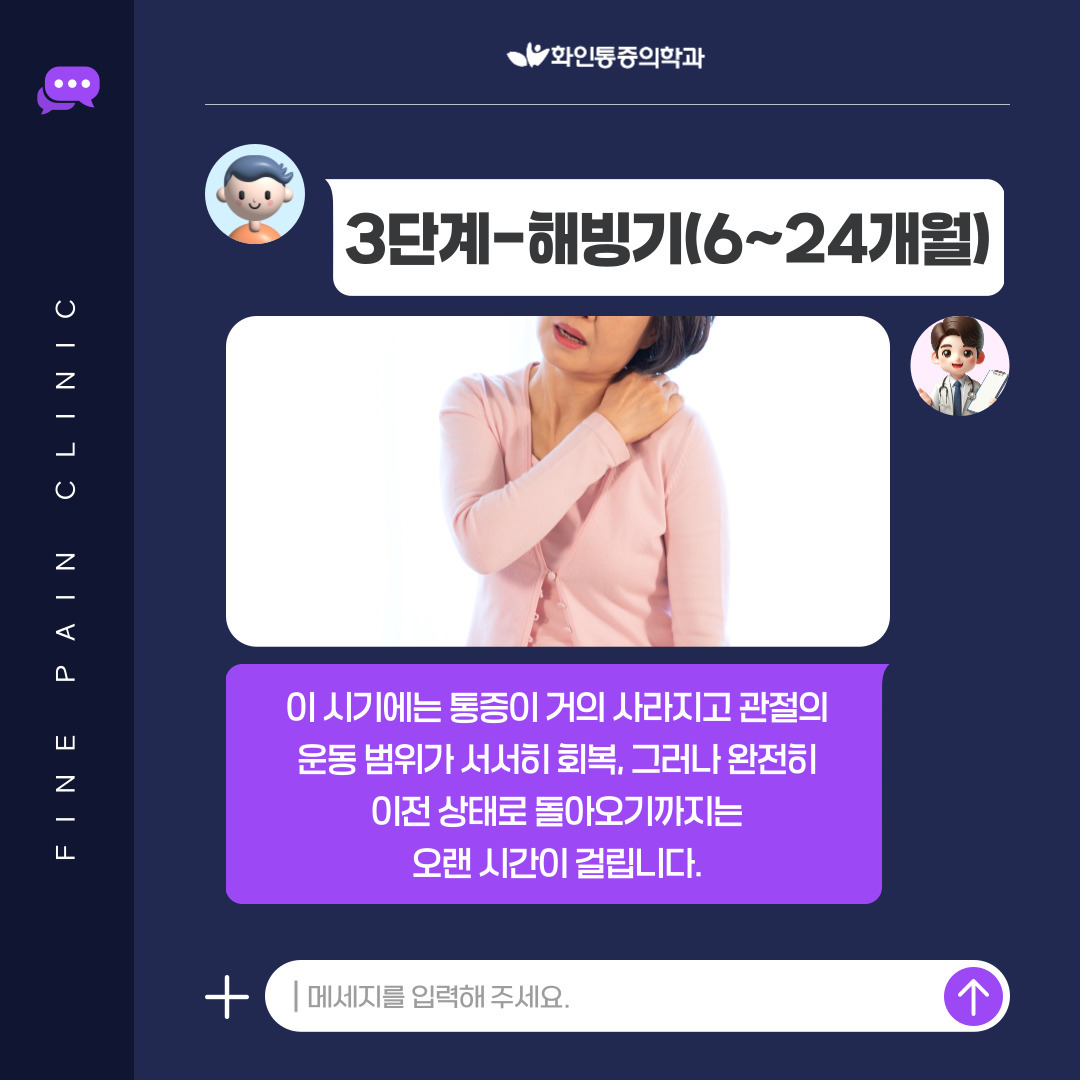 오십견은 자연적으로 3단계로 진행되며,