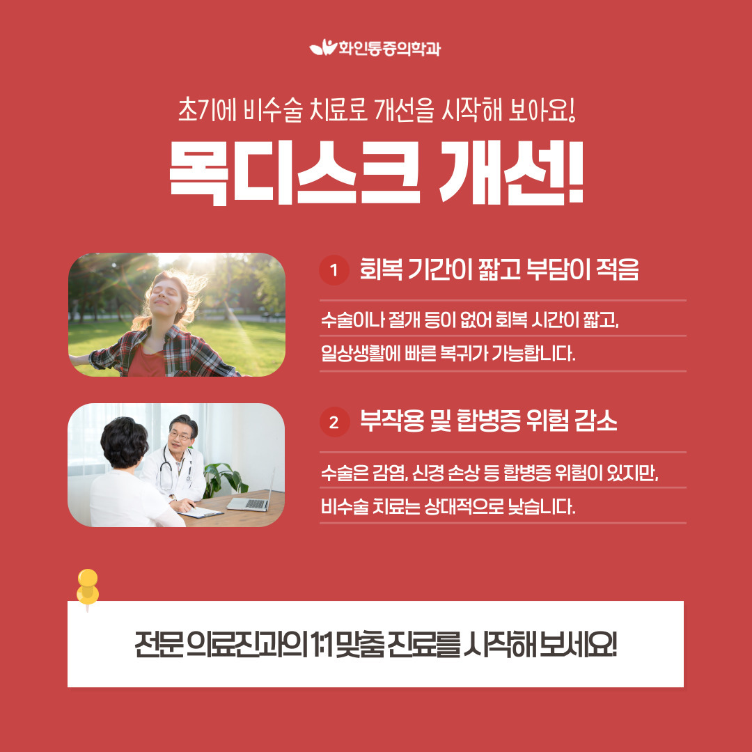 진료를 통해 목디스크인지, 다른 질환인지 확인하고,
