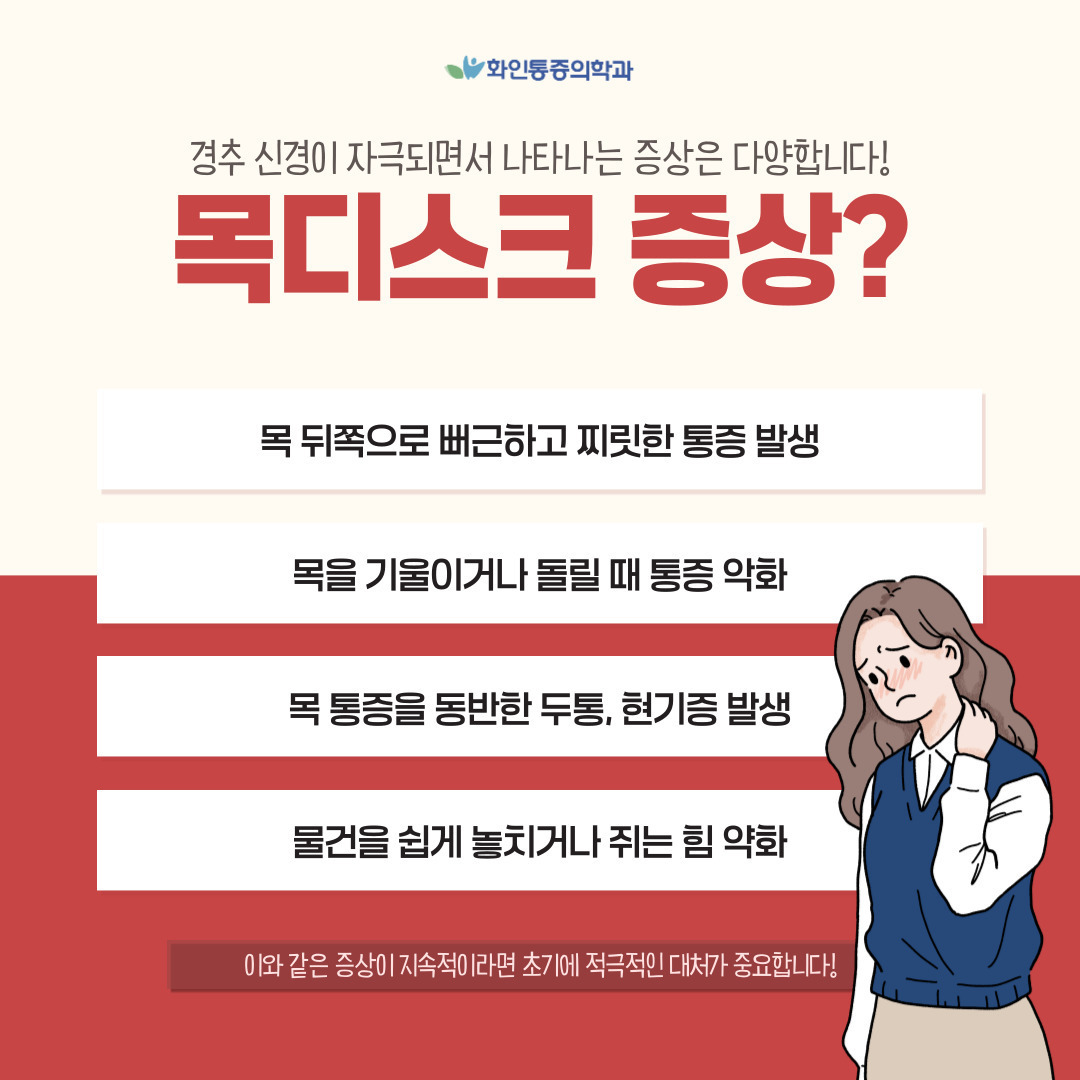 생길 수 있는데, 이러한 증상이 모두 목디스크