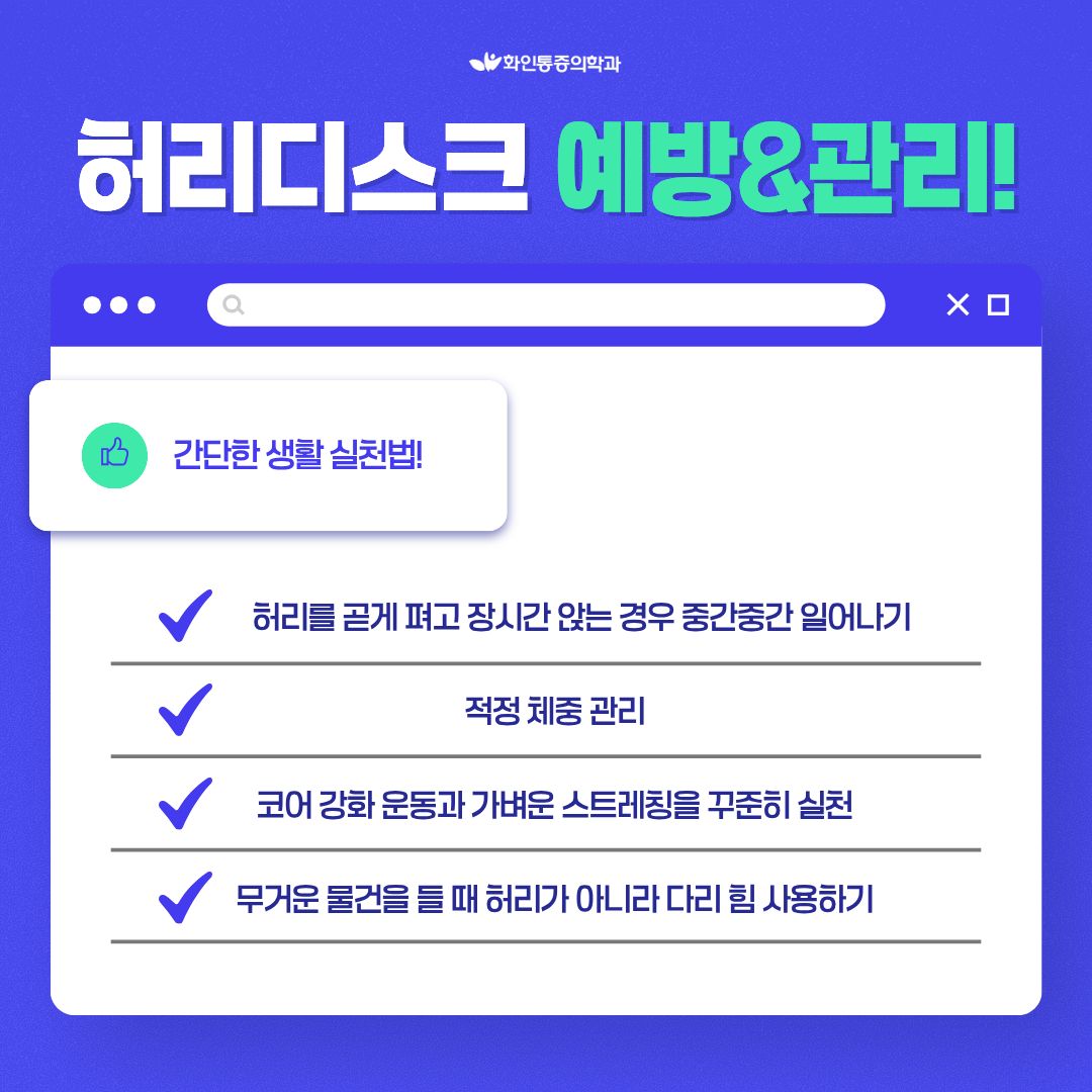 • 체중 관리로 요추 5번 6번 디스크 압박 감소