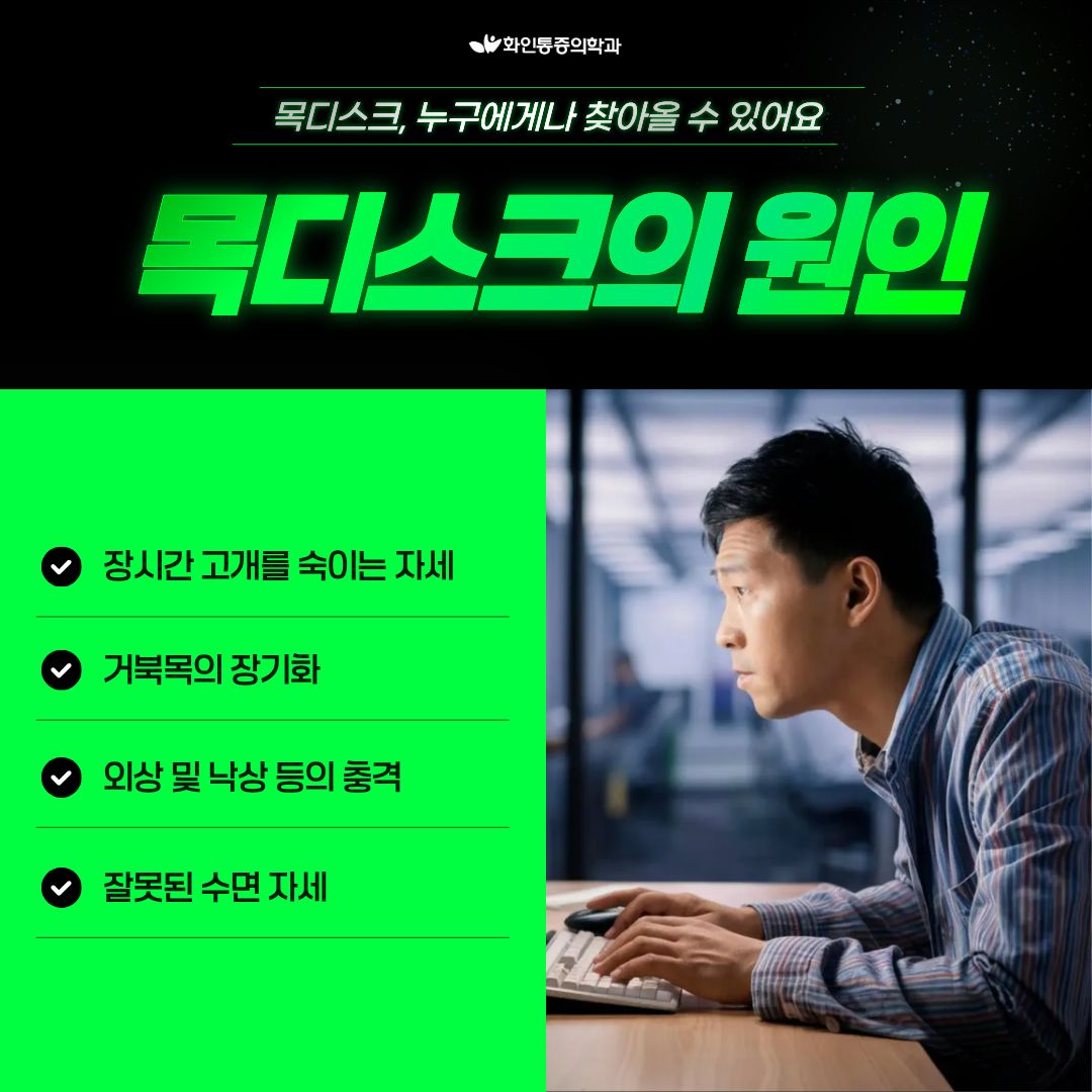 | 군자역목디스크치료 뒷목과 승모근을 따라 팔꿈치 바깥쪽까지 통증? 손가락 저림이 목디스크 증상 의심 신호일수도 (0) | 2026.02.20 |