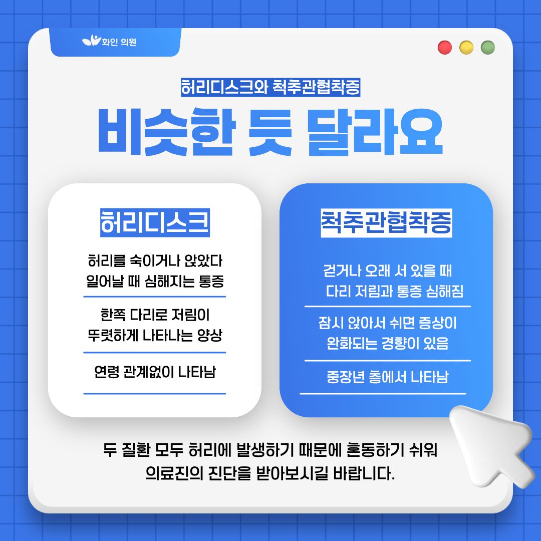 허리디스크와 척추관협착증은