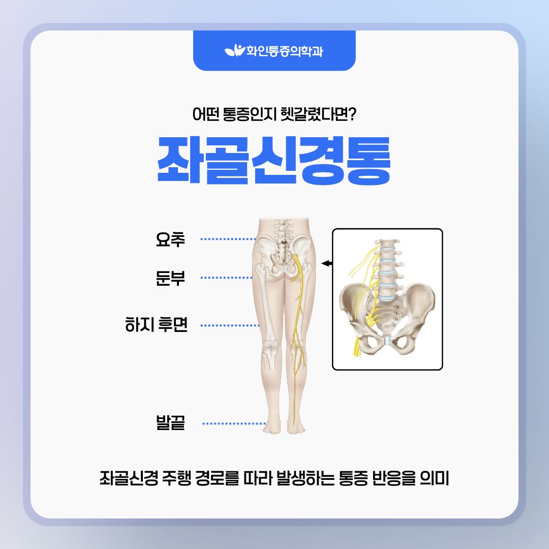 좌골신경통이랑 무엇이 다른가요?" 하고 질문하세요.