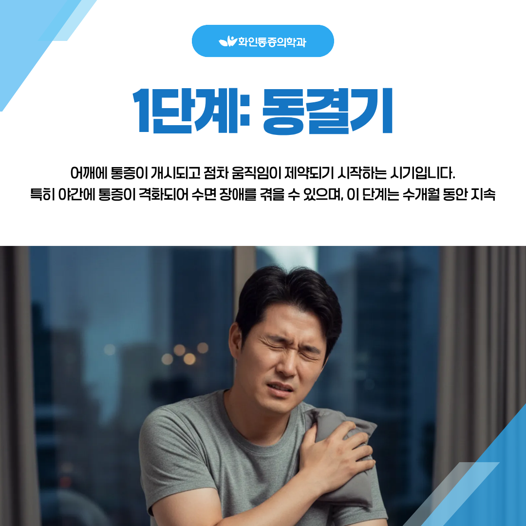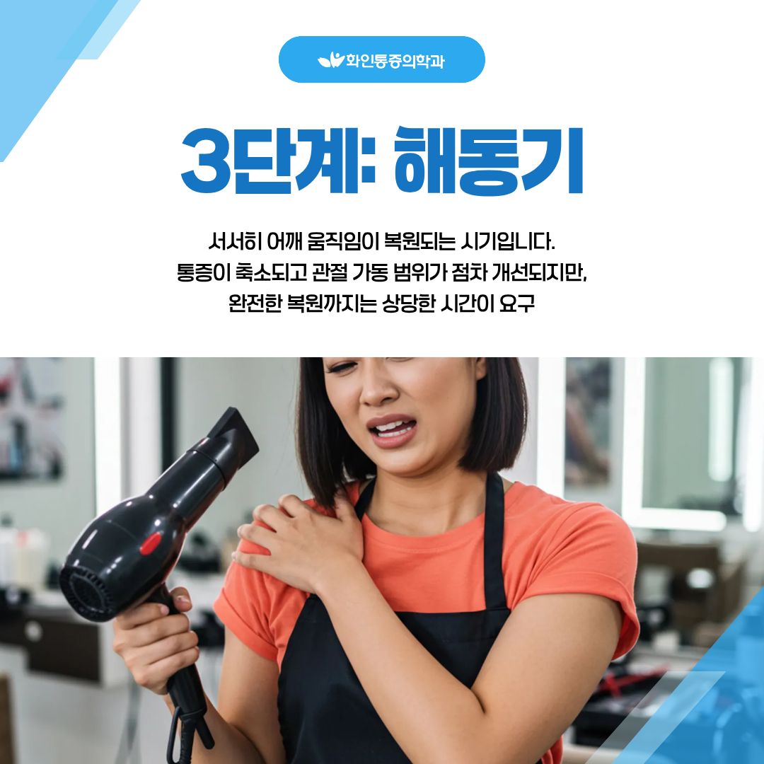 오십견은 진행 단계에 따라 증상이 상이하게