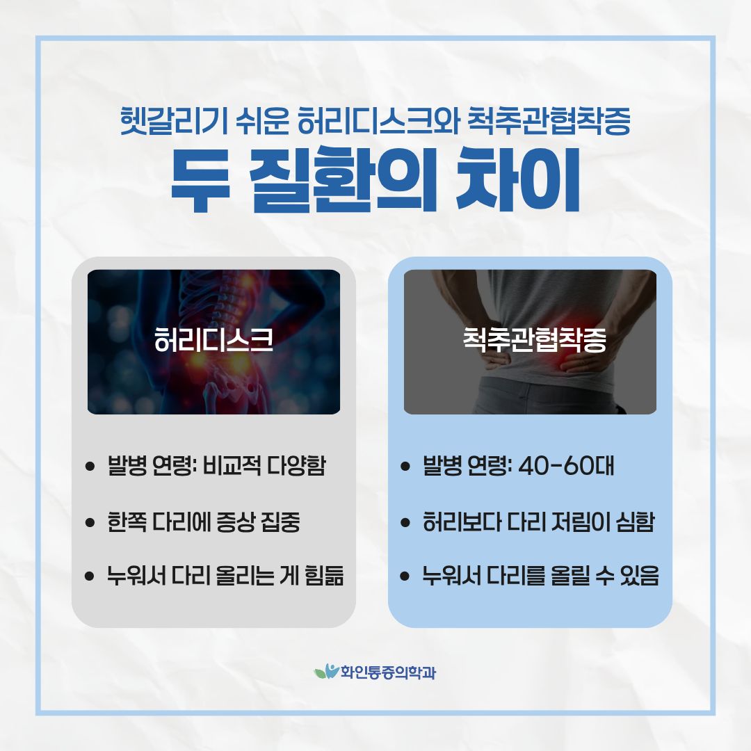 허리디스크와 척추관협착증, 어떻게 구별하나요?