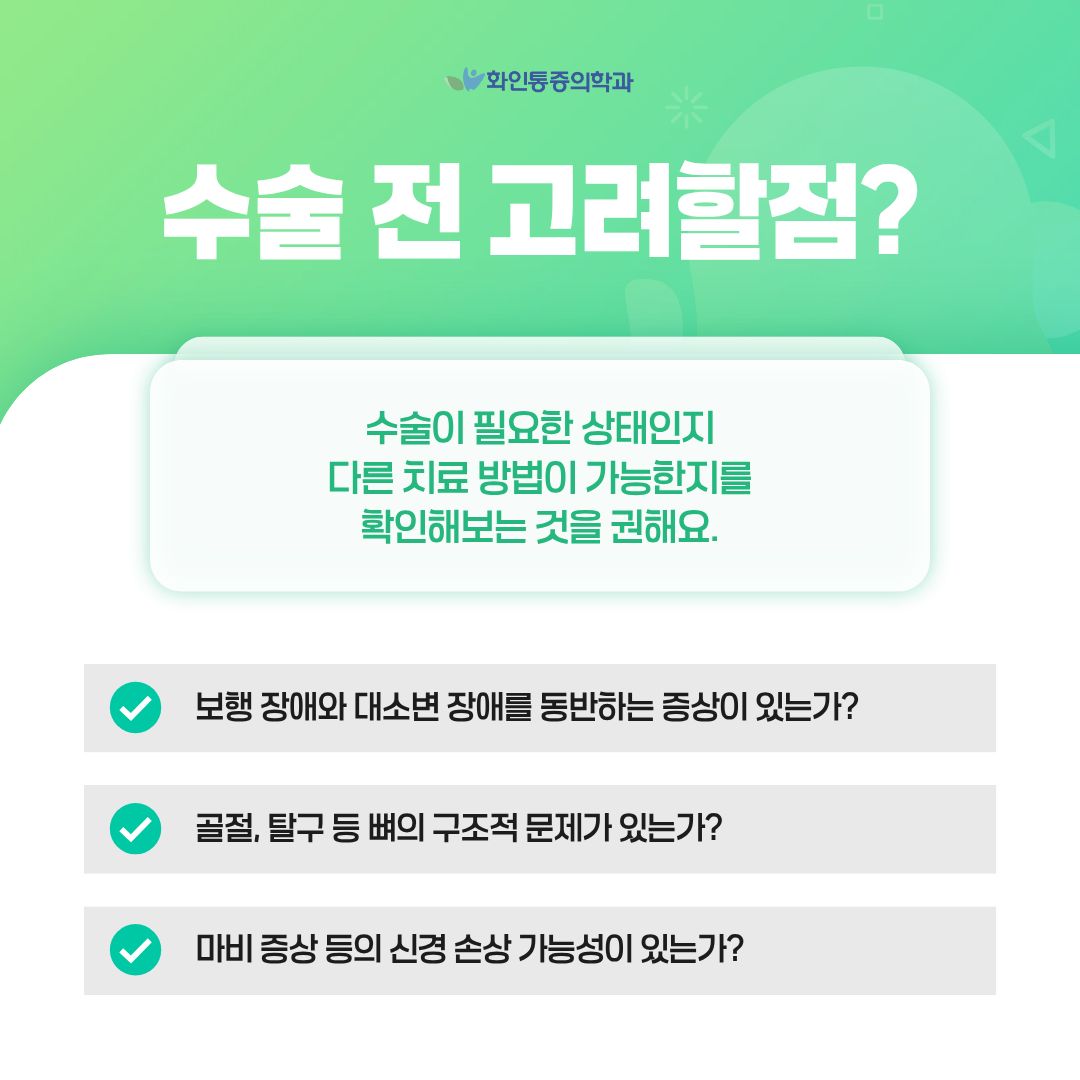 ✅ 보행 장애와 대소변 장애가 동반되는 경우,