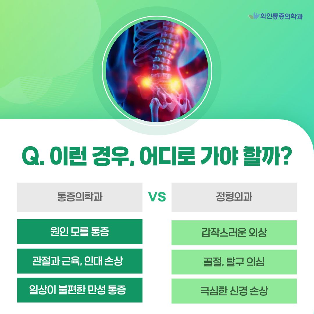 통증의학과를 먼저 떠올려볼 수 있습니다.